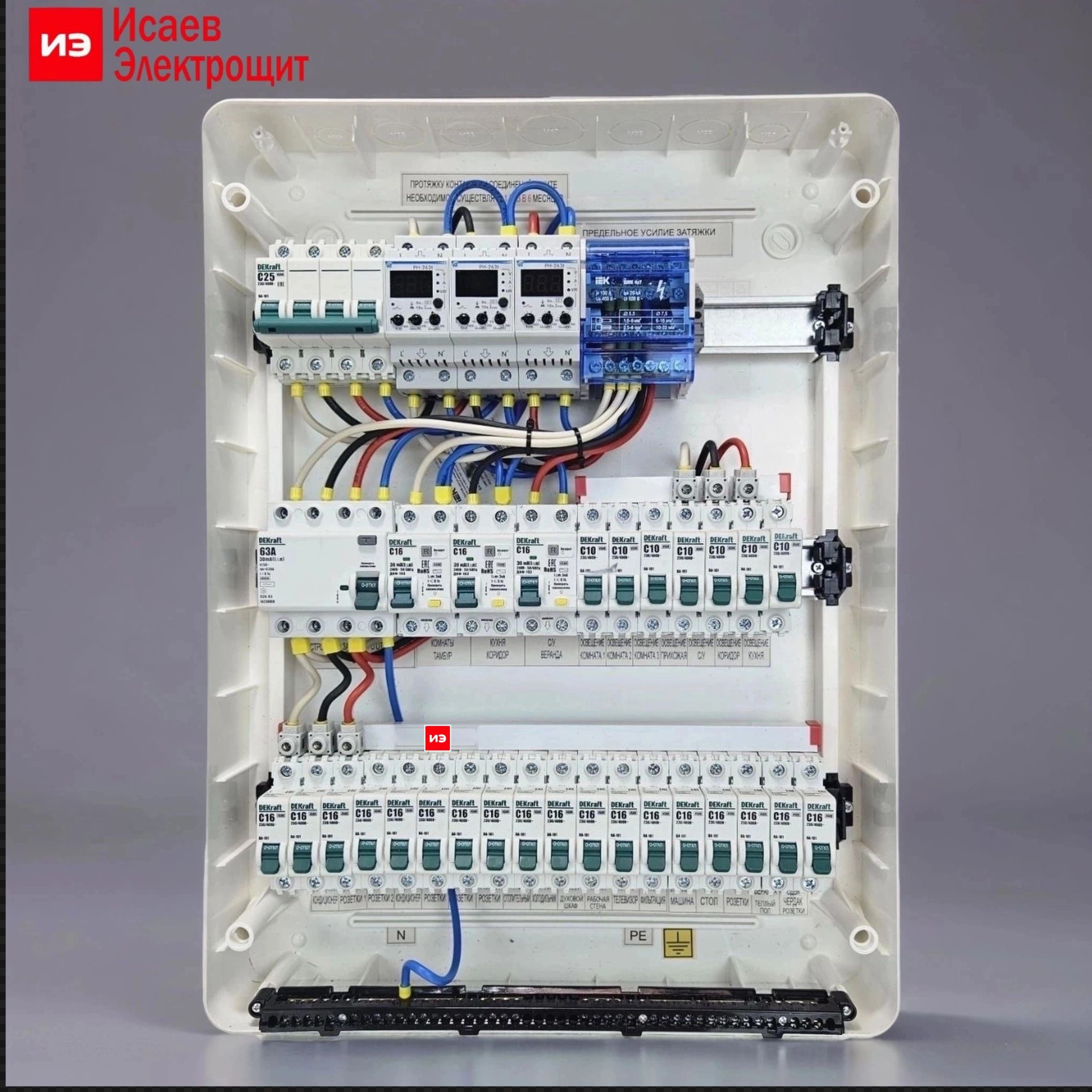 Состав: С25А 4Р - 1 шт, ВДТ (УЗО) 3Ф+N 40А - 1шт, С16А 3Ф - 1 шт, С20А - 1 шт, С16А - 7 шт , С10А - 5 шт, АВДТ(ДИФ) С16А 30мА - 3 шт, РН 263Т - 3 шт