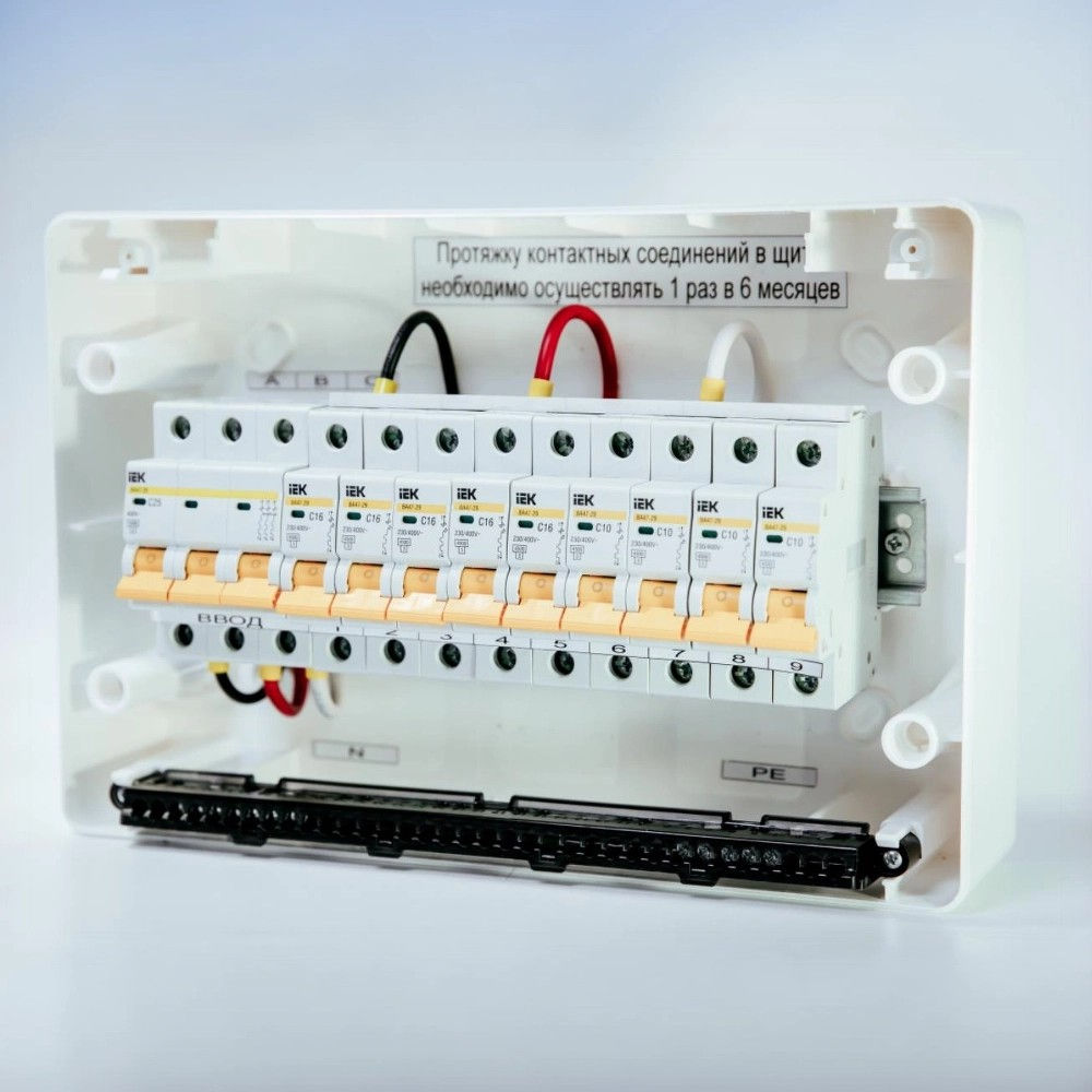 Путём установки перемычки (идёт в комплекте) щит может быть использован и при однофазном подключении.