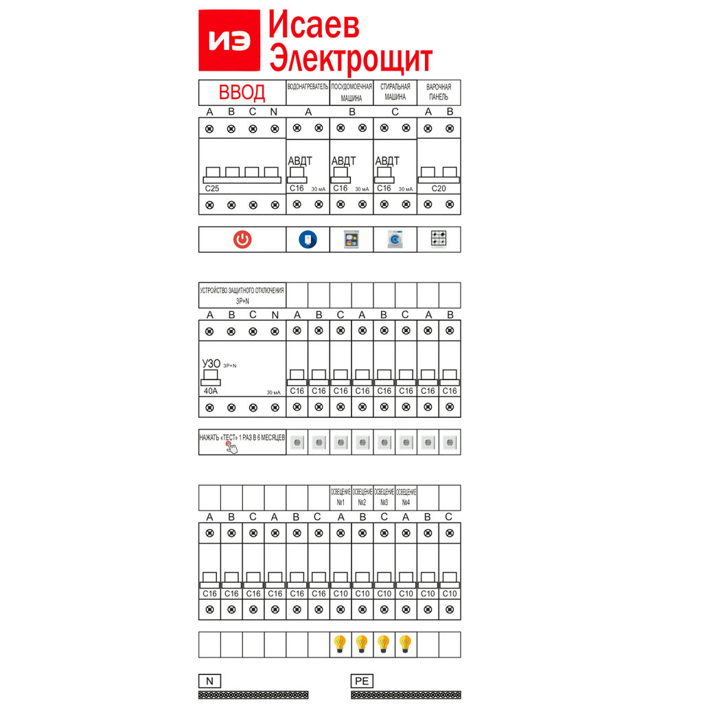 На особо «ответственные» потребители установлены 3 АВДТ (ДИФ) автомата С16, 30мА.